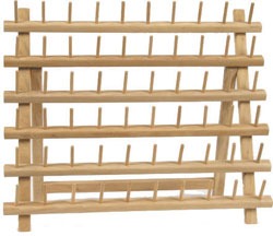 Sturdy, well balanced June Tailor rack is made of quality natural hardwood. Newman Sewing Mach. has an extensive selection of these thread racks to accommodate all size spools including 3000 - 6000 yard serger thread.