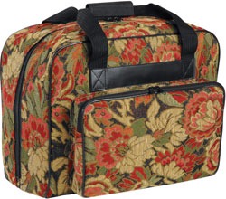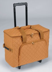 All trolley bags feature a solid, one-piece undercarriage with easy glide dual wheels and metelescoping, lockable metal handle.Padded sidewalls protect your contents.Multiple storage pockets have extra padding as well.An extra front protective blanket allows you to store additional items without scratching or damaging your machine.A Velcro safety strap secures your machine.Heavy duty, comfort grip handles, handy straps and smooth zippers make packing and unpacking a snap. Available in a choice of colors.